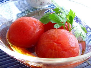 きゅうりを昆布茶でモミモミしたやつと、トマトのお浸し
