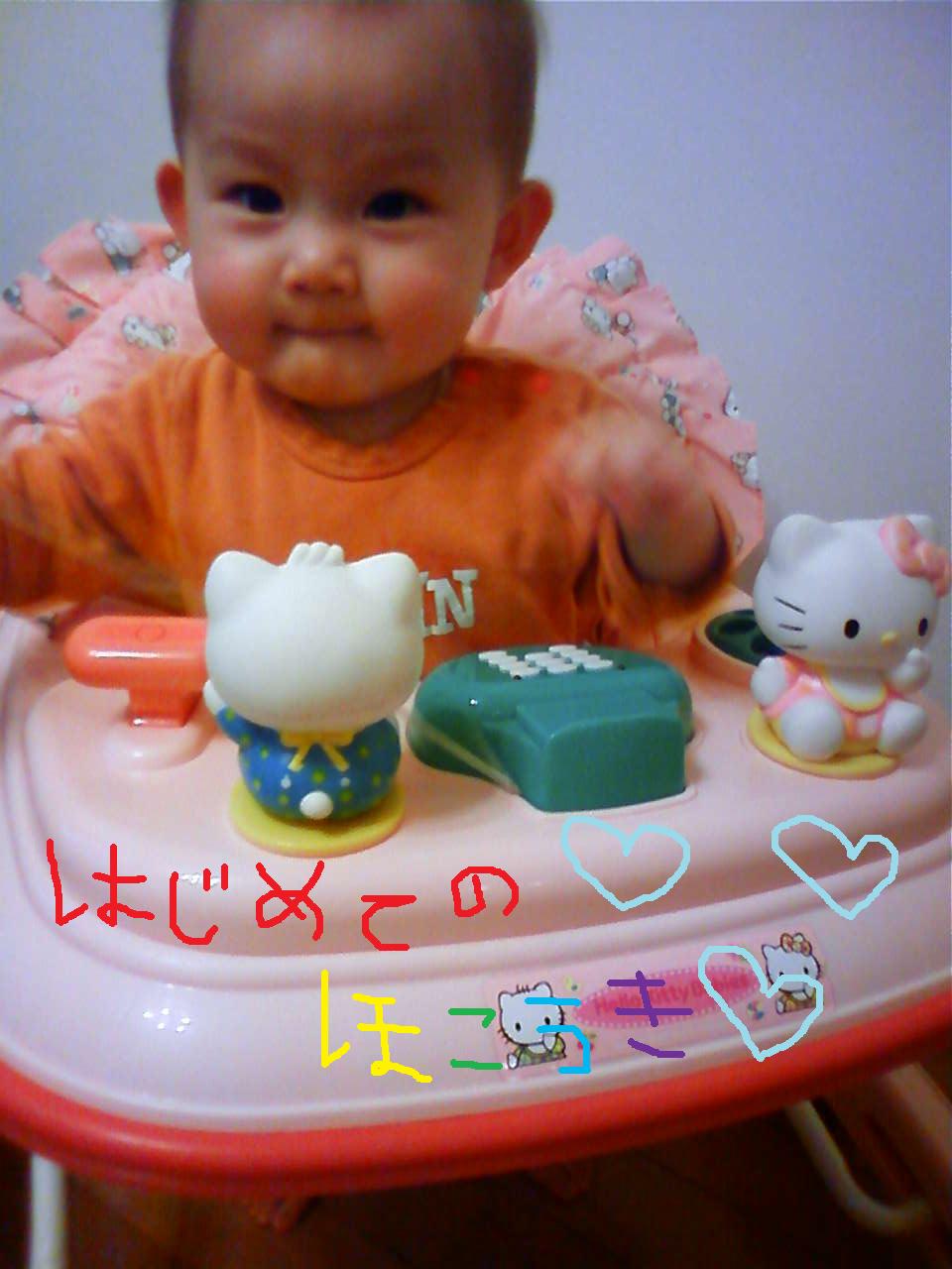 まだ歩いて遊んだりはしないけど、歩行器についてる電話が気に入ったみたい