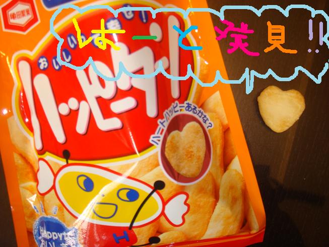 ハッピーターンにはーとが入ってたからやったぁ~って思って写真撮ってみた