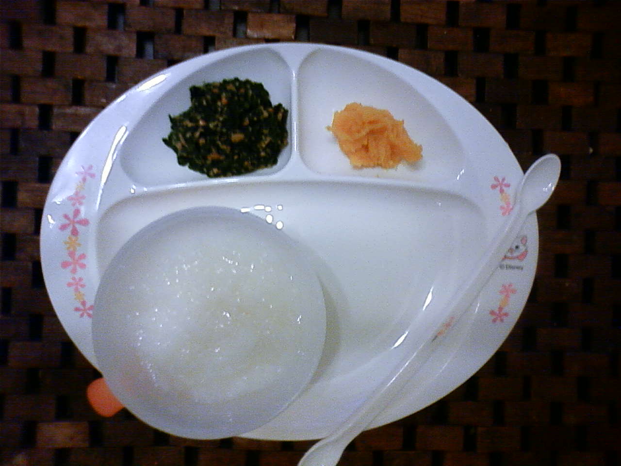 メニューは全がゆ・ほうれん草の納豆あえ・つぶしかぼちゃのミルク風味です。