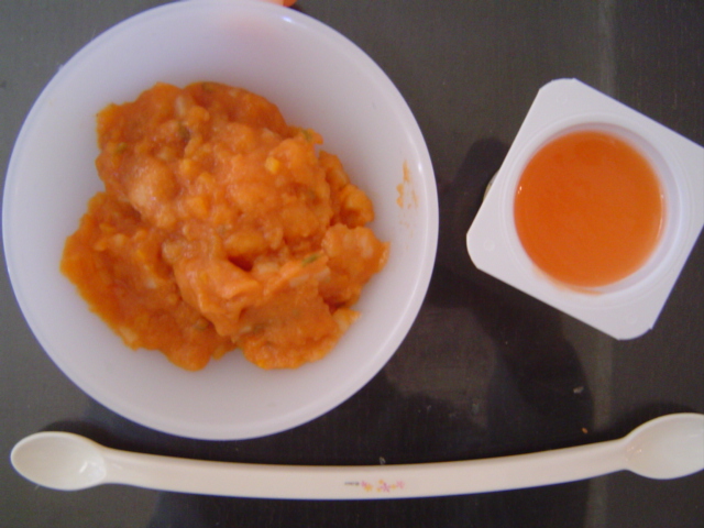 ツナとマカロニ入りトマトソースグラタンとベビーダノン(リンゴ味)